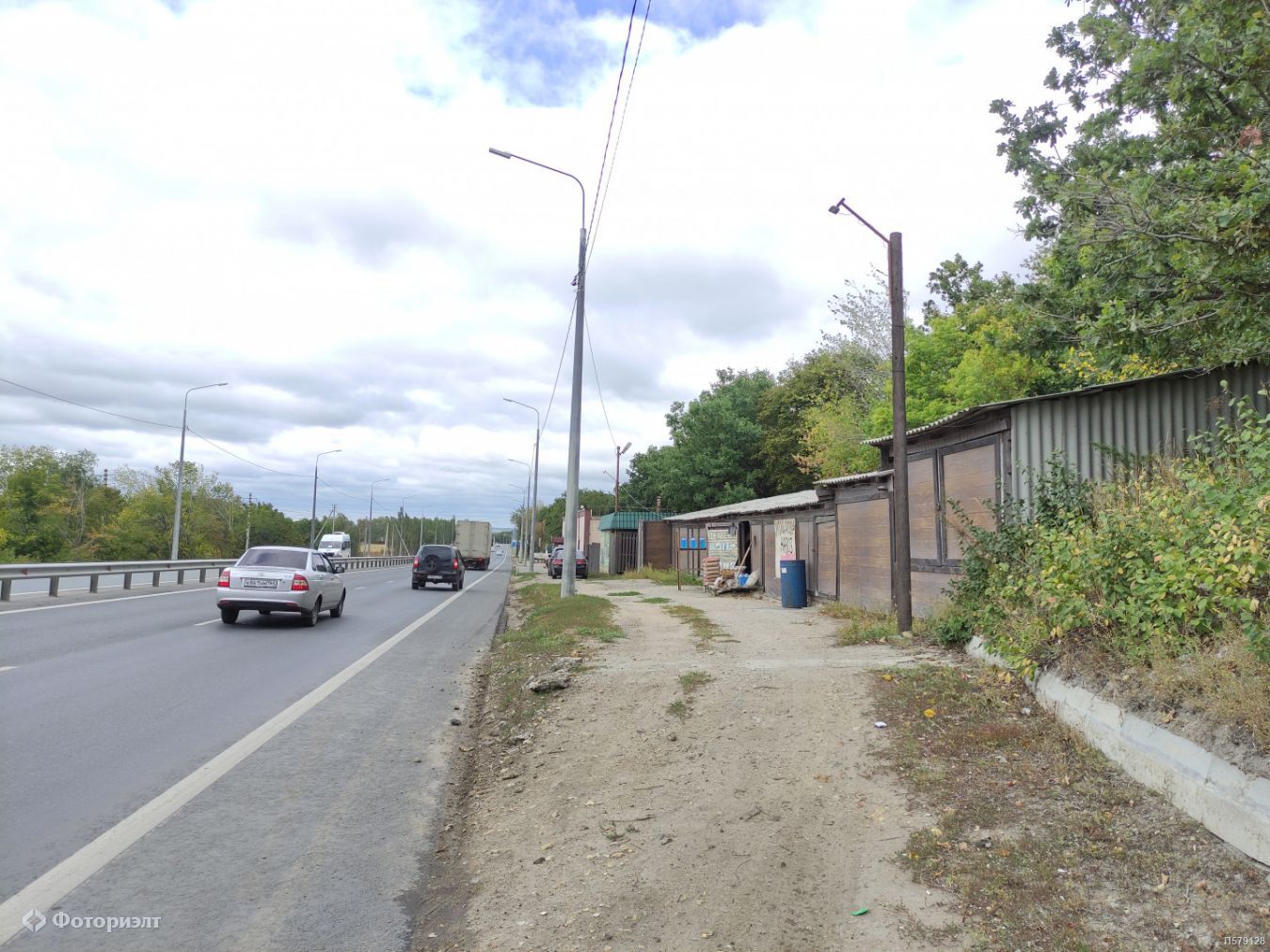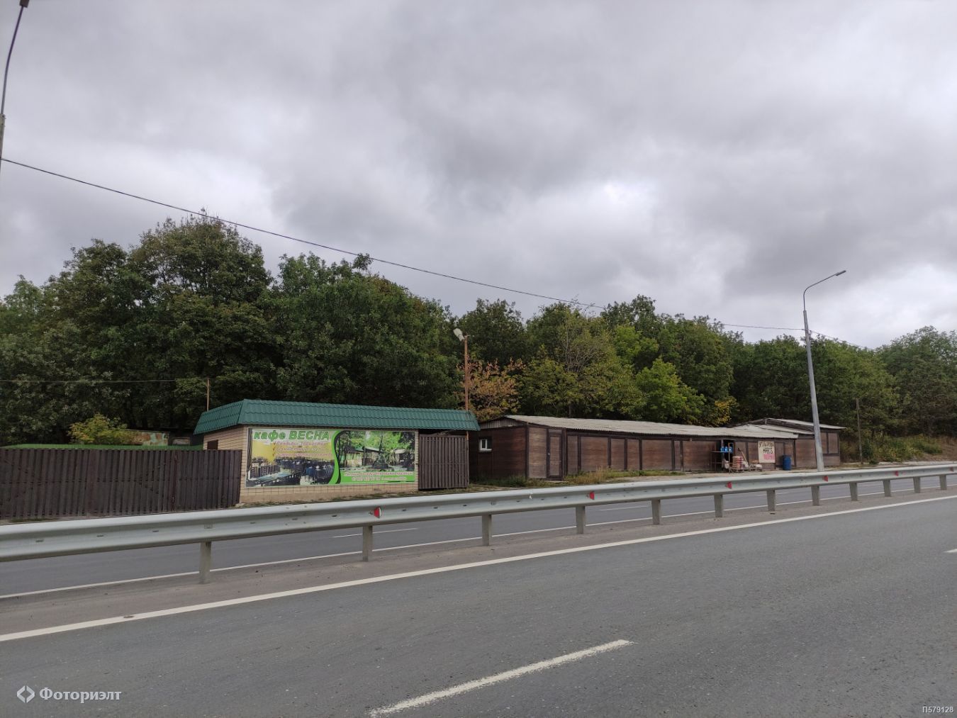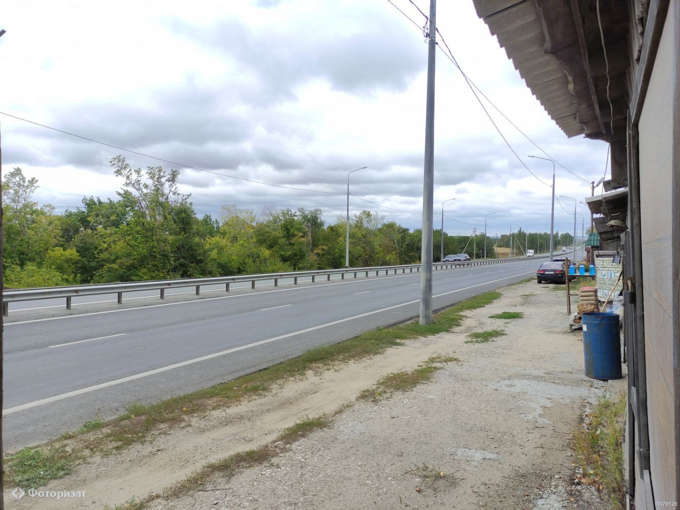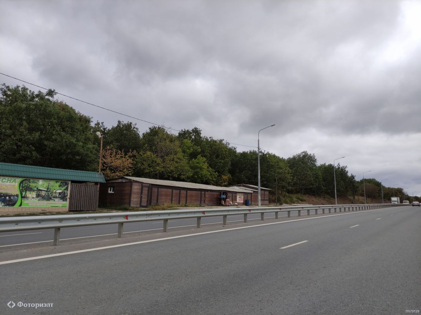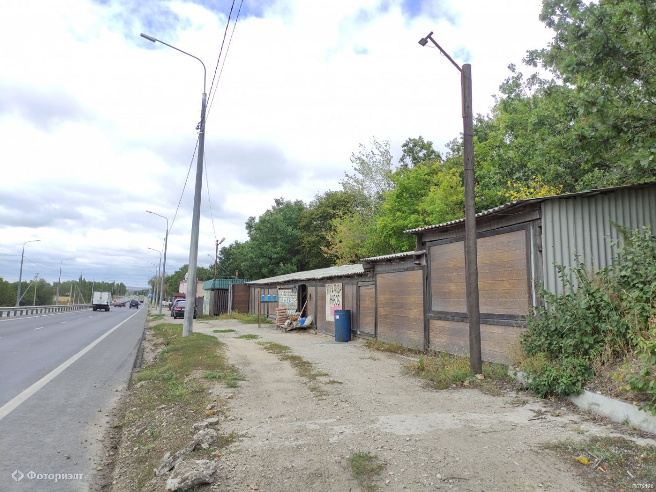 Участок 400 кв. м. вытянут вдоль трассы, отличный обзор с дороги, удобный прямой съезд.