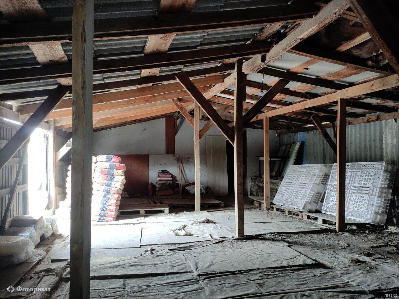 Хозяйственная постройка одноэтажная, складского типа, деревянное, крыша шифер.
