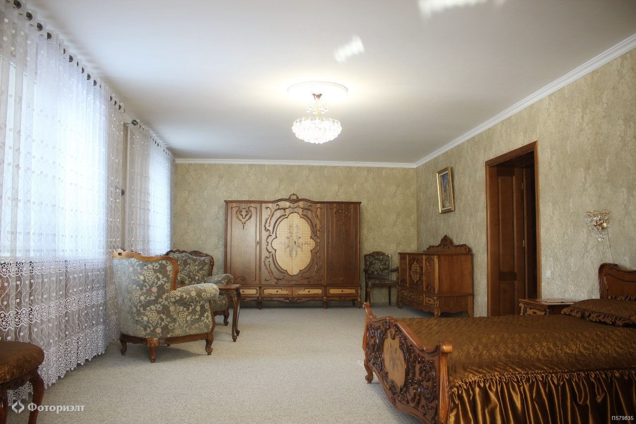 Площадь дома 521,3 кв. м. на земельном участке участке 20 соток. Дом 3-х этажный с полукруглым фасадом, с балконами, с колонами. Окна панорамные на всех 3-х этажах. В доме выполнена высококачественная отделка из натуральных материалов премиум-класса. Использованы натуральное дерево и камень. Дом полностью меблирован всей необходимой бытовой техникой и предметами интерьера. Вся мебель, кухня, двери и лестница выполнены вручную по индивидуальному заказу из массива дуба и находятся в идеальном состоянии. Инженерные коммуникации: электроснабжение (30 кВт), водопровод городской, канализация – выгребная яма (24 м3), отопление от собственной котельной с немецкими котлами «Viessmann», вентиляция, системы кондиционирование и видеонаблюдения. Участок площадью 12 соток благоустроен: вымощены дорожки, выполнено уличное освещение, высажен газон, устроены фонтаны и альпийские горки. Участок с лесными деревьями, имеет въездную группу с автоматическими воротами.