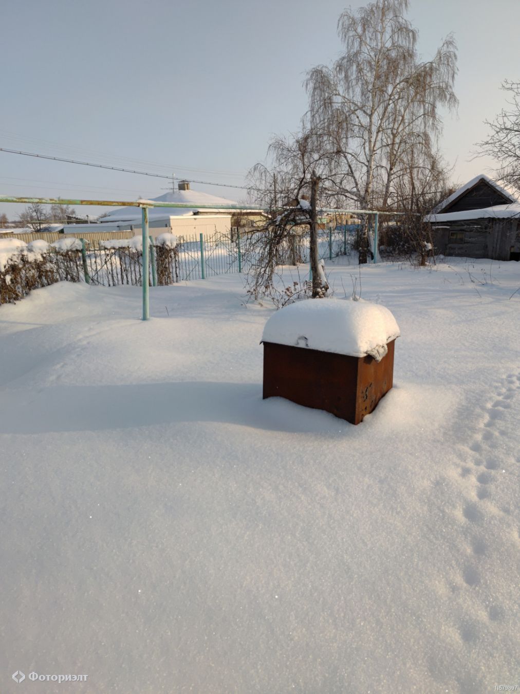 Большой участок, на котором есть дворовые постройки, выгребная яма.